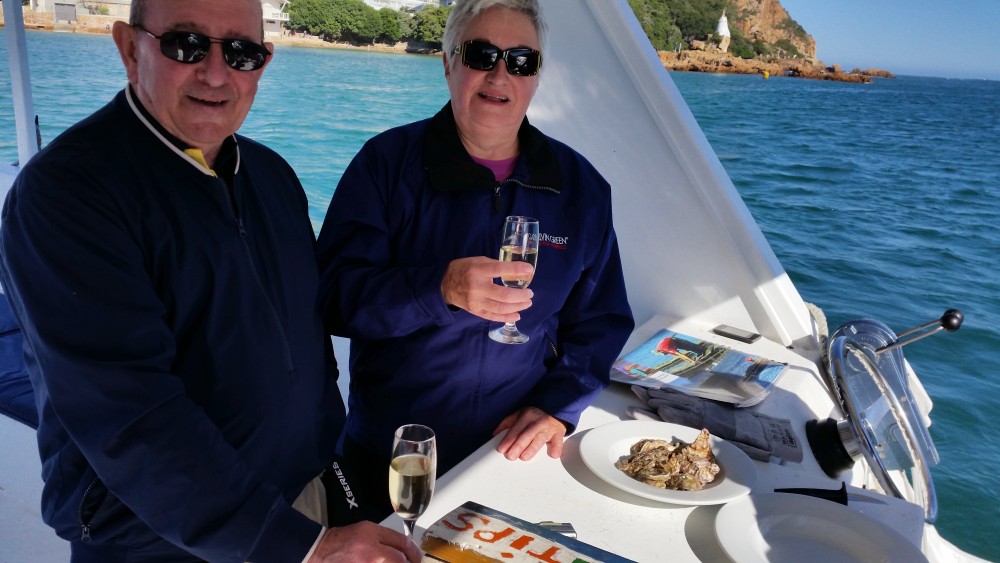 Oyster Tasting with guests on the knysna River